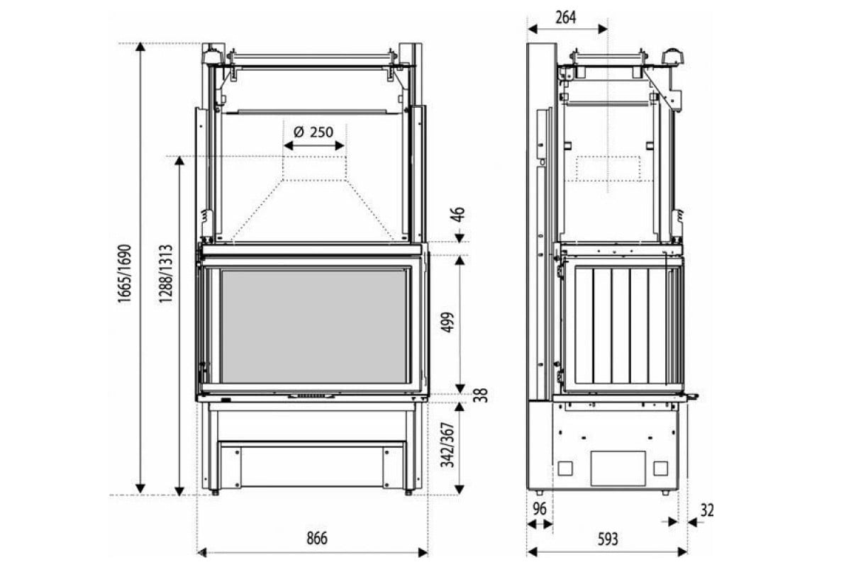 Schemat i wymiary kominka: